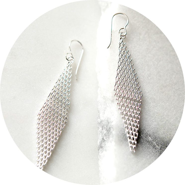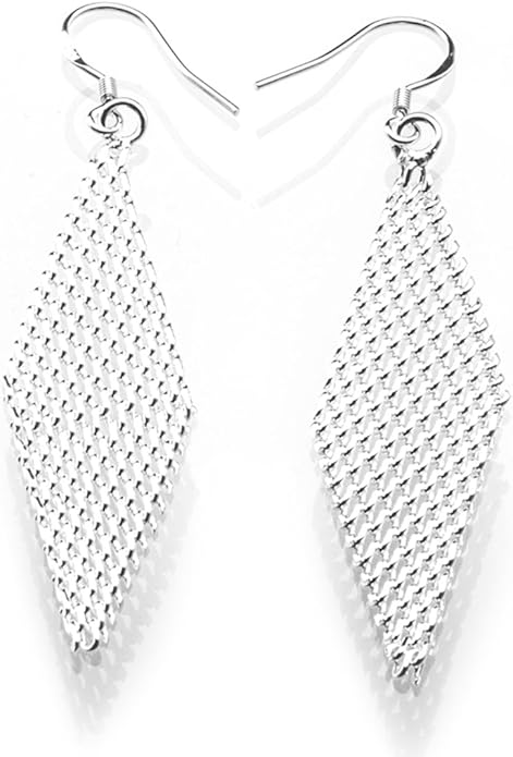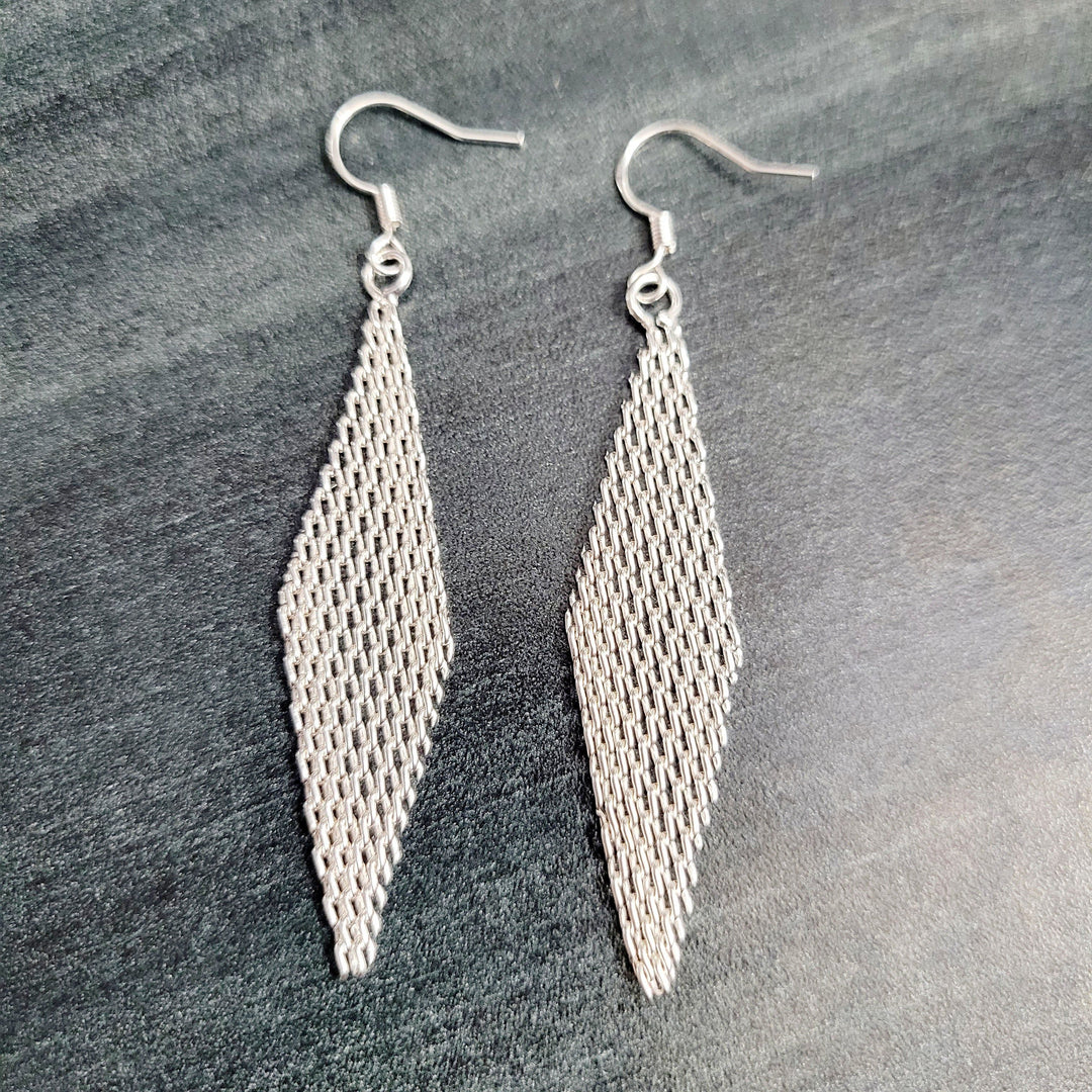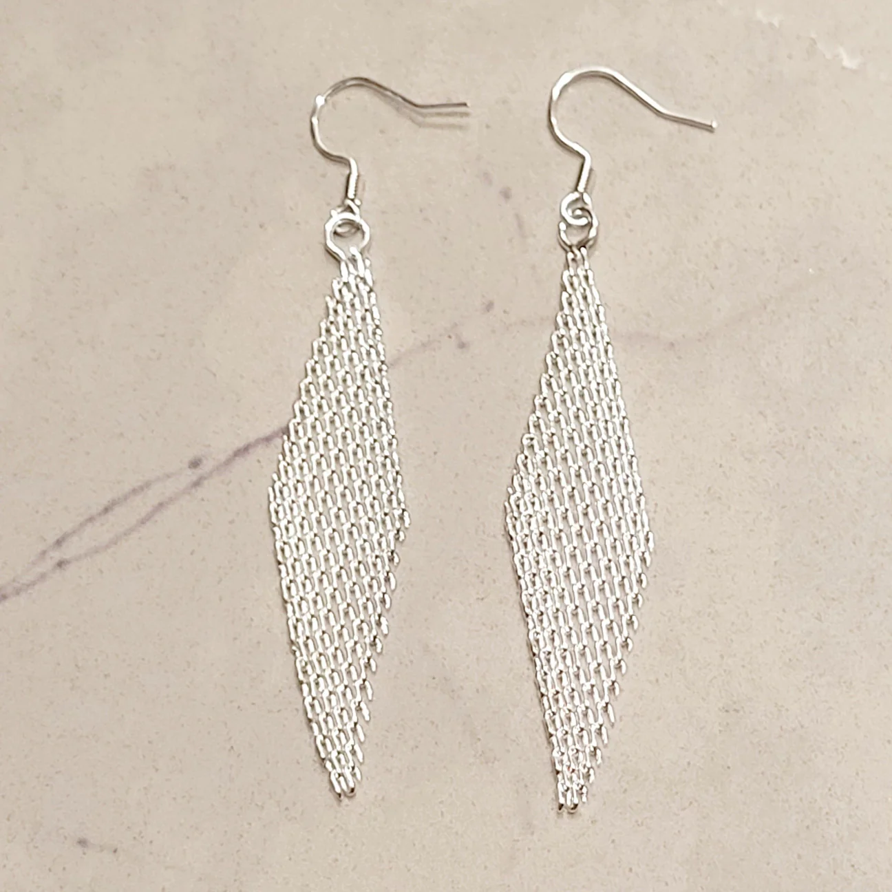 Silky Chain Mesh Prismatic Earrings – S925 Sterling Silver Elegant Dangle Earrings
